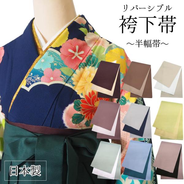 袴下帯 袴帯 卒業式 半幅帯 リバーシブル 9色 こげ茶 ベージュ ピンク紫 薄グレー 黄緑 ブルー 謝恩会 袴 帯 細帯 半巾帯 レディース