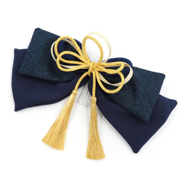 髪飾り リボン 卒業式 袴 紺 青 ゴールド ちりめん 房 組紐 和柄 七宝繋ぎ 大人可愛い 日本製 お洒落 成人式 振袖 結婚式 七五 No.9-5209