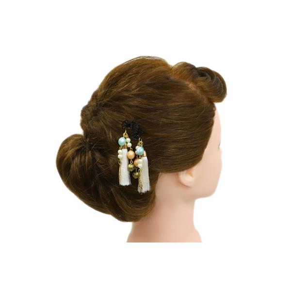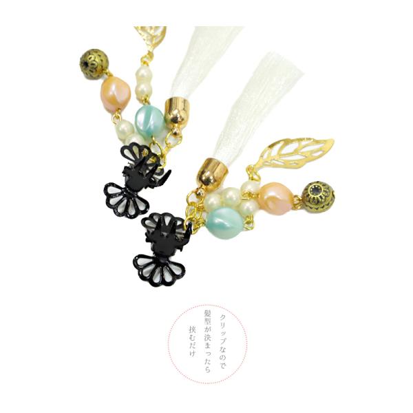 髪飾り 成人式 振袖 袴 2点セット 白 ゴールド 金 黒 房 下がり クリップ タッセル ストーン パールビーズ ピン ヘアアクセ おしゃれ プラスワン 大人 大人可愛い 可愛い 粋 ユニーク 和装 卒業式 結婚式 入園式 卒園式 謝恩会 七五三 浴衣 パーティー コスプレ No.10-0396