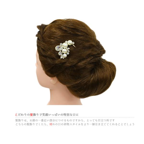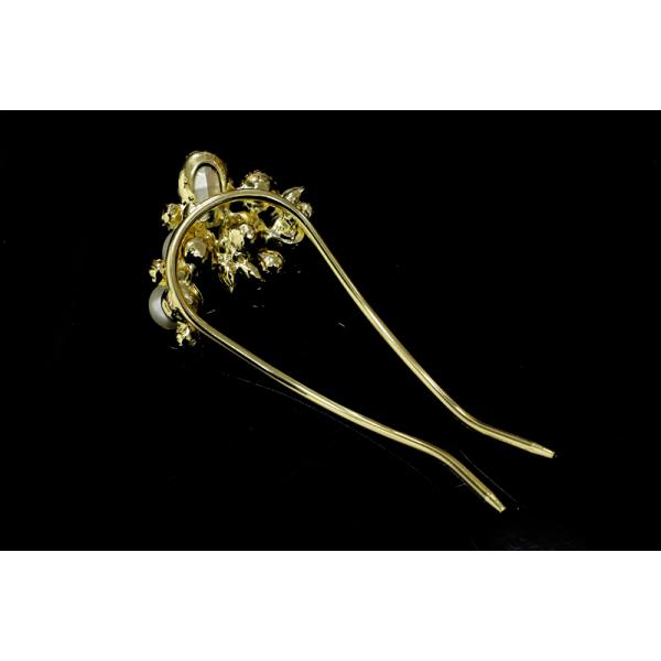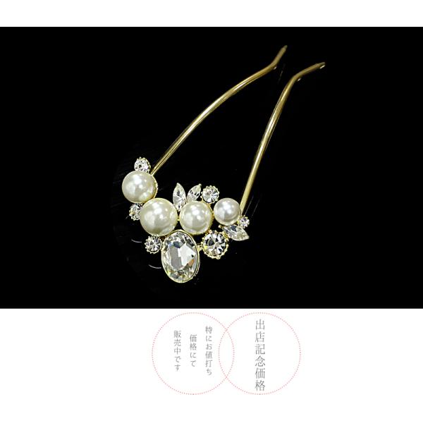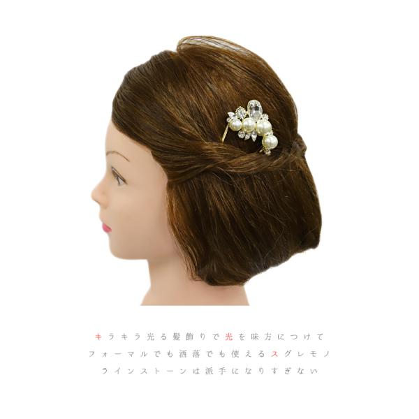 髪飾り 卒業式 入学式 結婚式 ドレス パーティー ゴールド 白 ラインストーン パール キラキラ かんざし シンプル シック おし No.10-0409