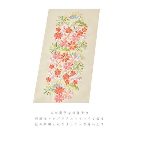 半衿 半襟 振袖 成人式 訪問着 刺繍 白地 白 礼装用 黒留袖 塩瀬 梅 桜 菊 結婚式 日本製 ポリエステル 着物 和装 半襟 可愛い No.10-6588