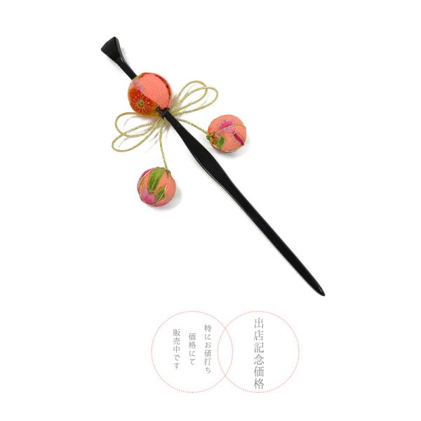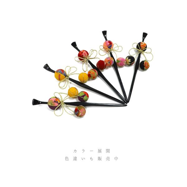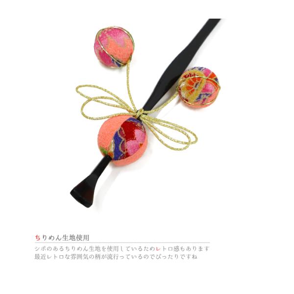 一本差し 玉かんざし 玉簪 髪飾り リボン 浴衣 成人式 振袖 袴 かんざし 玉飾り 黒 サーモンピンク ピンク サーモン ちりめん No.10-1046