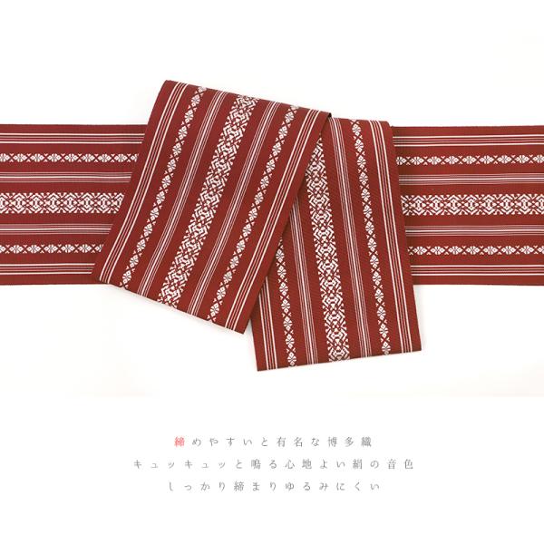 博多織 半幅帯 浴衣帯 博多帯 正絹 浴衣 赤 三献上 本場筑前博多