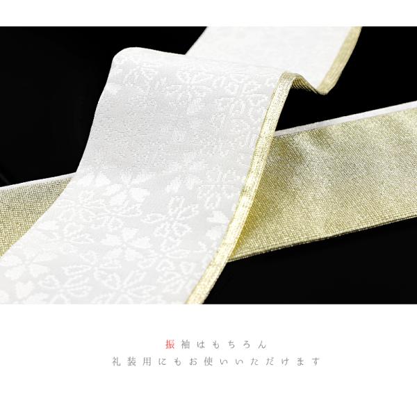 重ね衿 振袖 伊達衿 正絹 白地 オフホワイト ゴールド 花 桜 小