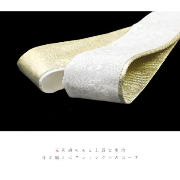 重ね衿 振袖 伊達衿 正絹 白地 ゴールド 花 桜 小花 襟ピン付き 裏金 礼装用 フォーマル 日本製 お洒落 可愛い ちりめん 訪問着 No.10-5122