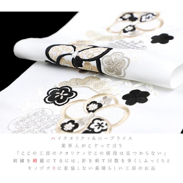 半衿 半襟 振袖 成人式 訪問着 刺繍 白地 白 礼装用 黒留袖 塩瀬 梅 桜 菊 結婚式 日本製 ポリエステル 着物 和装 半襟 可愛い No.10-6588
