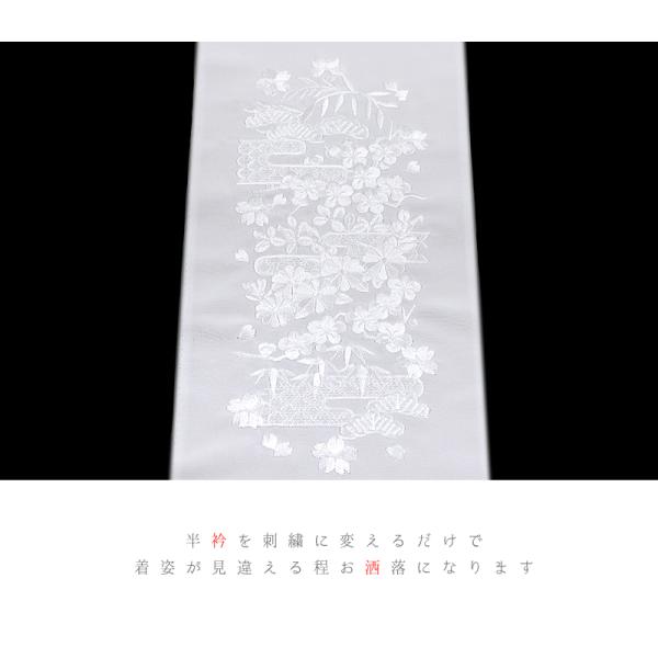 半衿 半襟 振袖 成人式 訪問着 刺繍 白地 白 礼装用 黒留袖 塩瀬 梅 桜 菊 結婚式 日本製 ポリエステル 着物 和装 半襟 可愛い No.10-6588