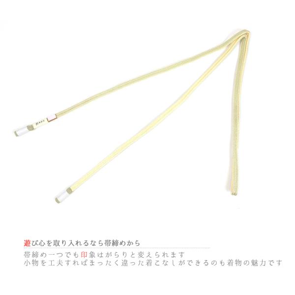 帯締め 翠嵐工房 嵯峨野冠 京京組紐 正絹 冠組 撚り房 並尺 リバーシブル 若草色 黄緑 黄色 レモン色 日本製 新品 お洒落着 訪 No.10-5371