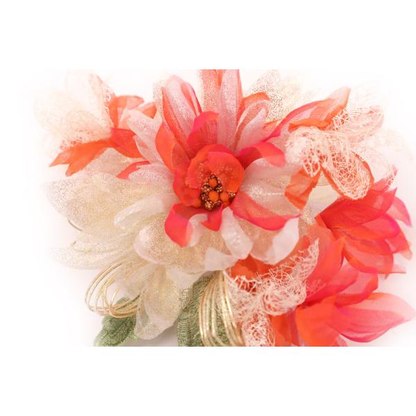特別セール価格 髪飾り 成人式 水引 赤 振袖 袴 花 2点セット 白 オレンジ 朱色 ゴールド 大特価 レース ふわふわ おしゃれ 大 No.8-0854