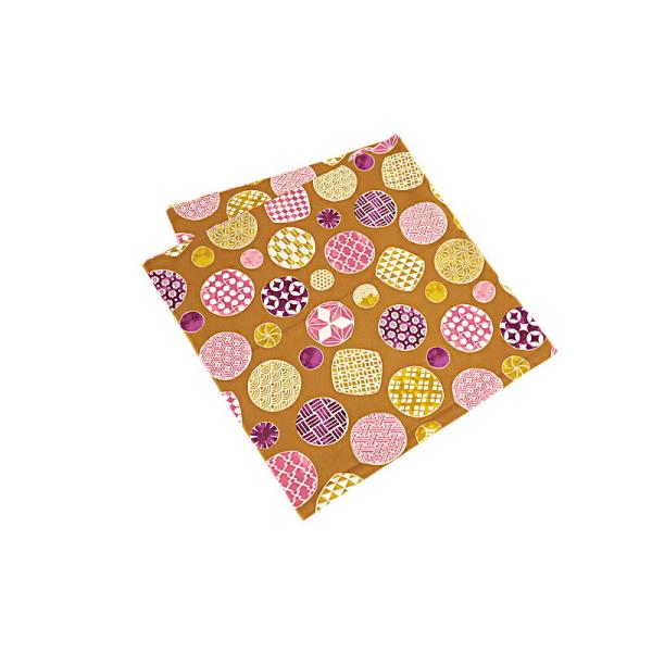 風呂敷 日本製 114cm幅 大判 黄色 からし色 水玉 矢絣 格子 青海波 麻の葉 七宝 紗綾形 亀甲 菱 市松 チェック 幾何学 和柄 綿1 No.8-2021