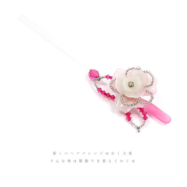 髪飾り 一本差し 浴衣 お祭り 花 夜光 ピンク 白 シルバー クリア 透明 ビーズ 薔薇 バラ 成人式 振袖 袴 キッズ 子供 女の子 No.8-2698