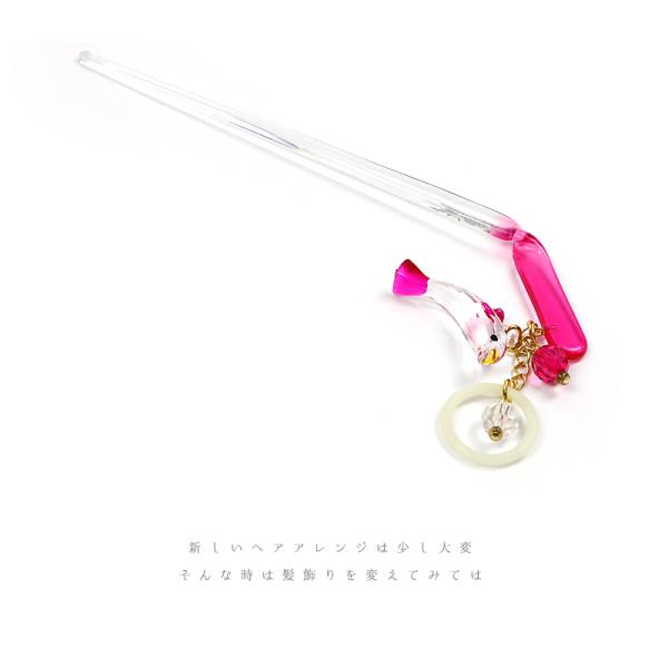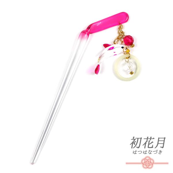 髪飾り 一本差し 浴衣 お祭り 花 夜光 ピンク ゴールド クリア 透明 イルカ 海豚 アニマル ビーズ 下がり ゆらゆら 成人式 振袖 No.8-2699