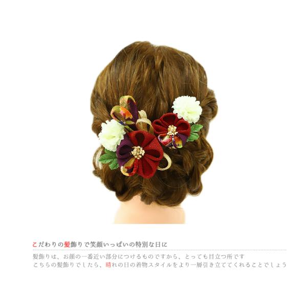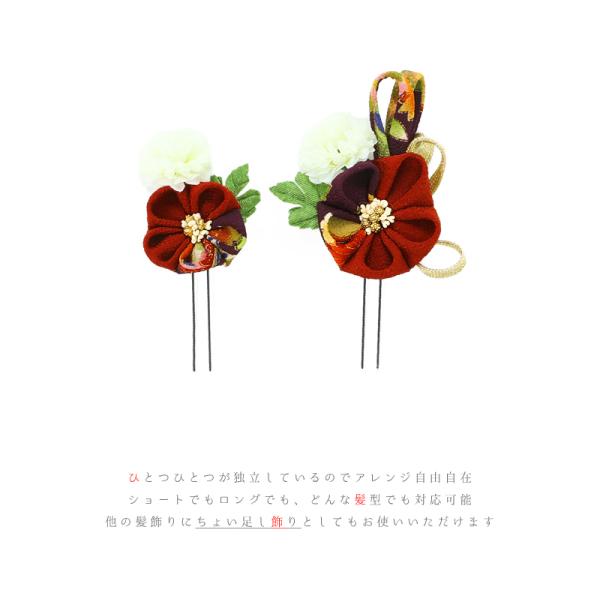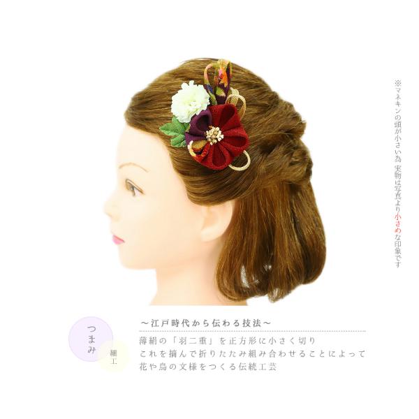 髪飾り 成人式 つまみ細工 赤 振袖 袴 花 2点セット 紫 ちりめん 組紐 和柄 かんざし かわいい 日本製 小さい おしゃれ 和装 着 No.9-2975