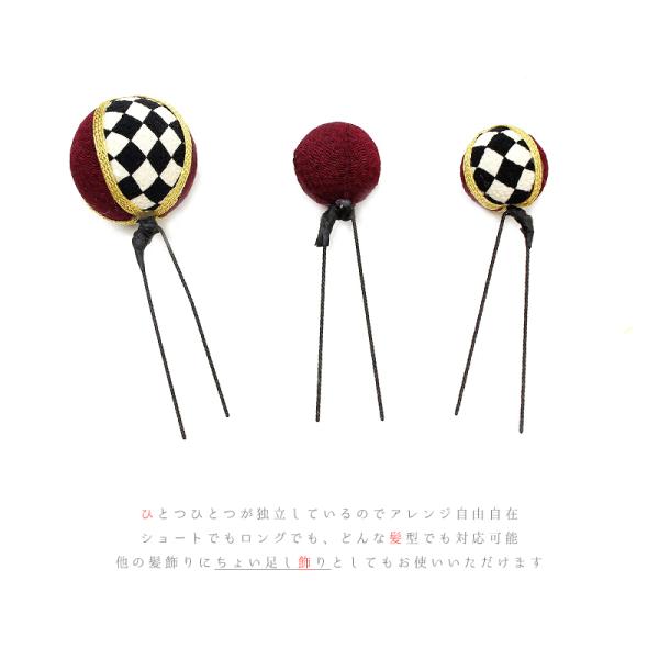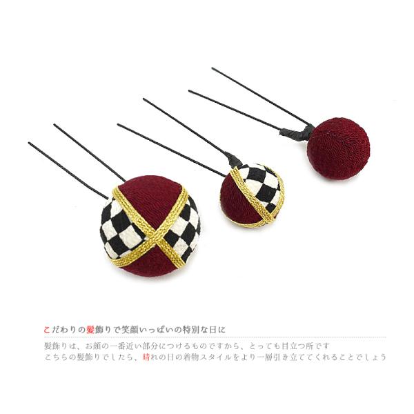 髪飾り 成人式 振袖 袴 3点セット 赤 ワインレッド ちりめん 玉飾り 格子 ヘアアクセ かんざし 簪 和装 新作 ヘッドドレス 卒業式 結婚式 入園式 卒園式 謝恩会 七五三 浴衣 パーティー お祭り No.9-3279