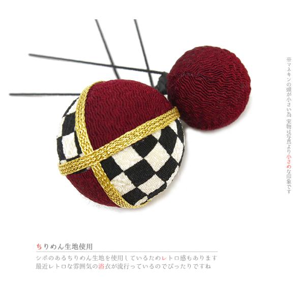 髪飾り 成人式 赤 振袖 袴 花 浴衣 夏祭り 花火大会 3点セット ワインレッド ちりめん 玉飾り 格子 ヘアアクセ かんざし 卒業式 No.9-3279