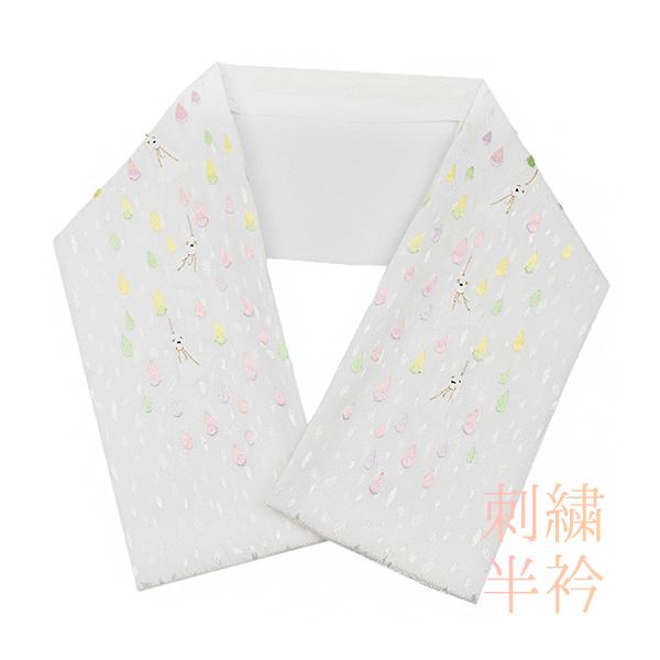 半衿 半襟 刺繍 ちりめん 白地 てるてるぼうず 雫 礼装用半衿 結婚式 パーティー 礼装用 フォーマル 訪問着 色無地 色留袖 和装 No.8-1263