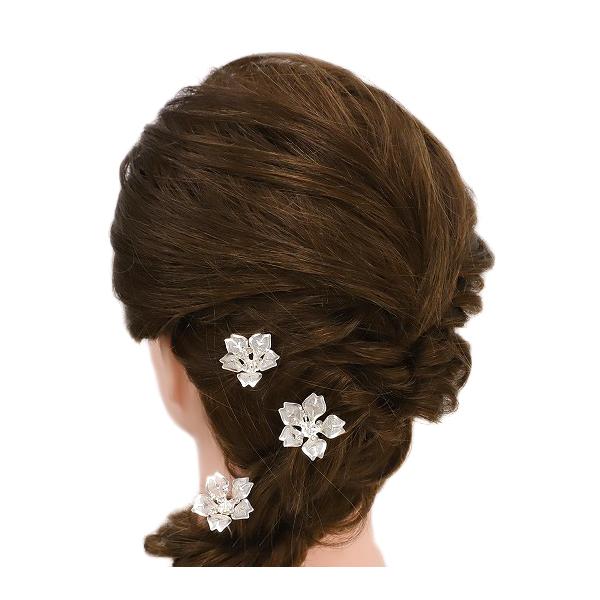 髪飾り 成人式 振袖 袴 花 浴衣 夏祭り 花火大会 3点セット 桜 キラキラ シルバー 銀色 ラインストーン Uピン 小さい おしゃれ No.9-4488