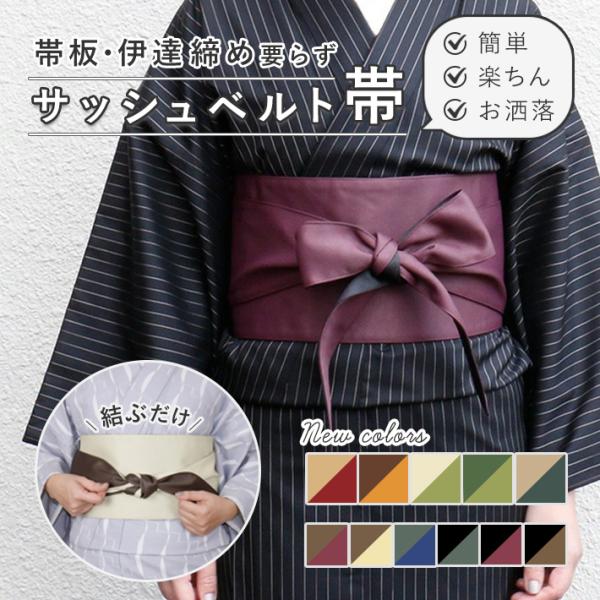 サッシュベルト 帯 着物 帯ベルト 簡単 リバーシブル モダン お洒落 普段着 半幅帯 洗える ポリエステル 半巾帯 ベージュ 赤 エンジ 黒 茶