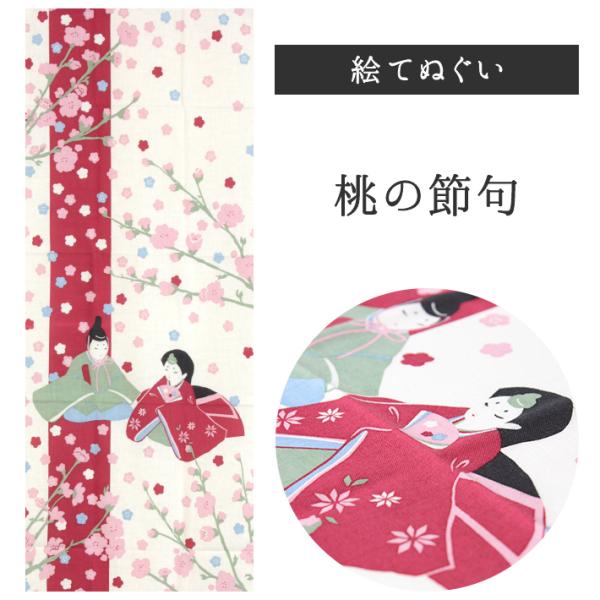 桃の節句 濱文様 てぬぐい 絵てぬぐい タペストリー 季節柄 横浜捺染 桃 桃の節句 雛祭り お雛様 ピンク モダン インテリア