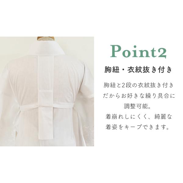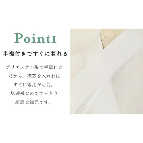 半襟・紐・衣紋抜き付きで着やすく崩れにくい設計です。