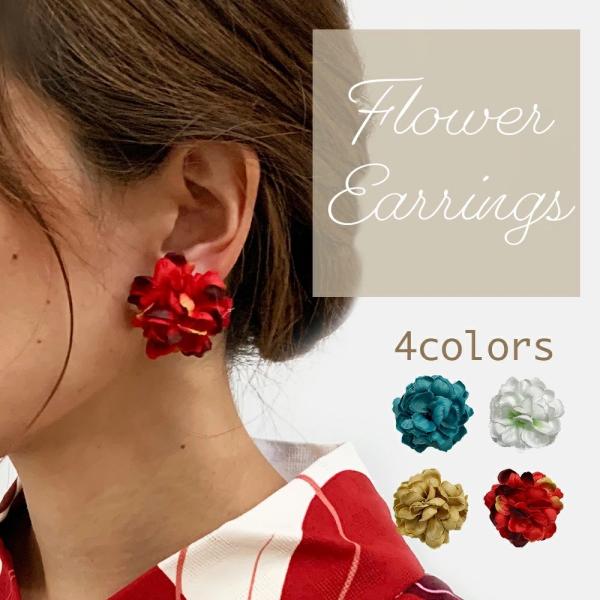 【 フラワー イヤリング 】 お花 着物 浴衣 大ぶり 花 クリップ式 和服 和装 成人式 卒業式 おしゃれ かわいい 造花 青 赤 白 ベージュ 送料無料 冬 春