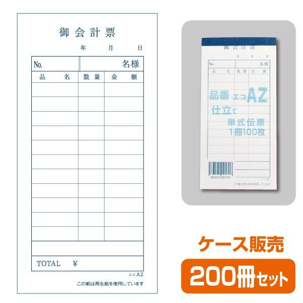 【お会計票/会計伝票】単式 エコAZ(1ケース200冊)