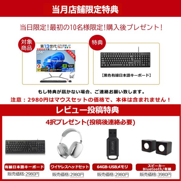 デスクトップパソコン 一体型PC デスクトップPC office付き Windows11 24インチ 一体型パソコン 第13世代 Core i3 i5 i7 i9 初期設定済み メモリ8~16G 256GB~2TB