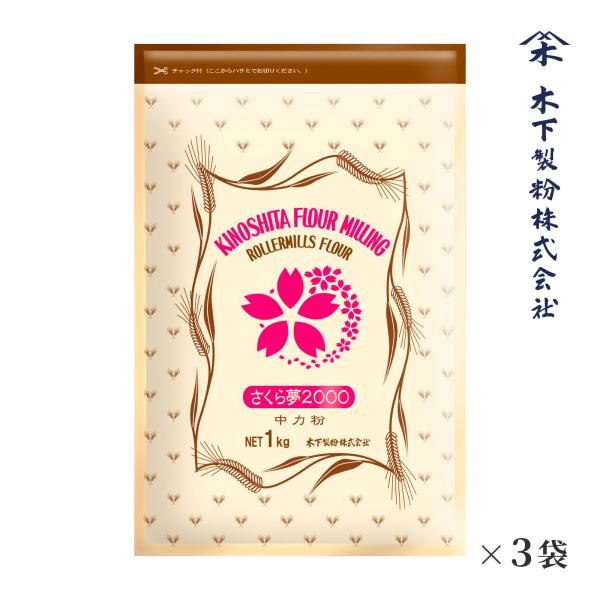 木下製粉 さくら夢2000 3kg(1kg×3袋) 手打ちうどん用 中力粉 小麦粉 ファリーナコーポレーション