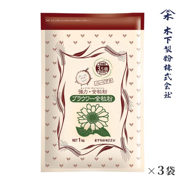 木下製粉 ブラウワー全粒粉 3kg(1kg×3袋) パン用 強力粉 小麦粉 全粒粉小麦粉 チャック付ラミネート袋 ファリーナコーポレーション
