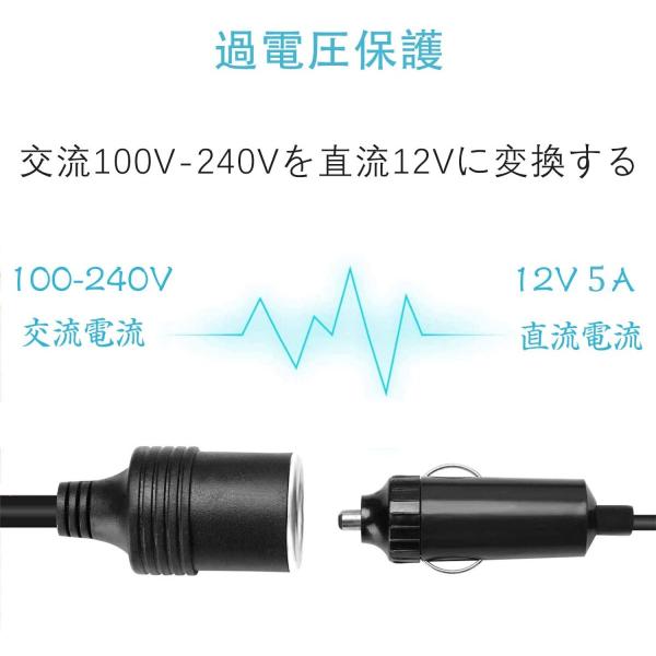 12V5A AC-DC電源変換アダプター カー用品 車載電器 シガーソケット 最大出力60W 電圧変換器 家庭用コンセントからシガーソケットに変換