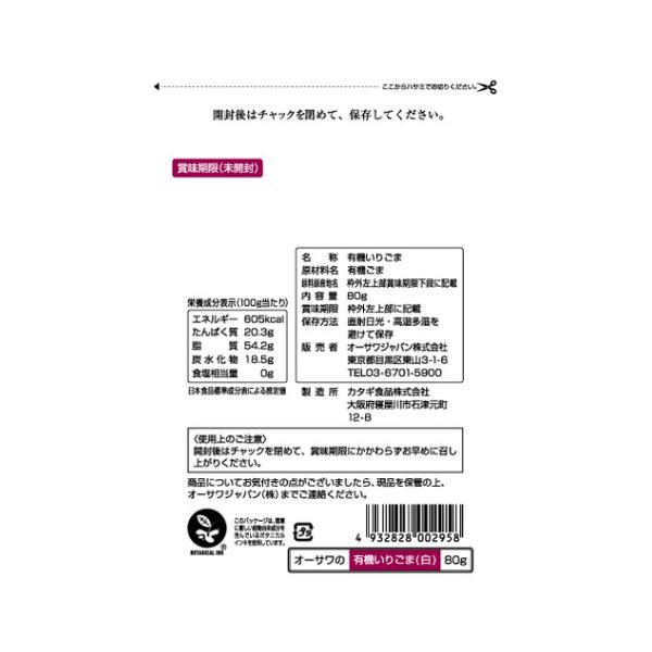 オーサワの有機いりごま(白)80g【有機JAS認定品】