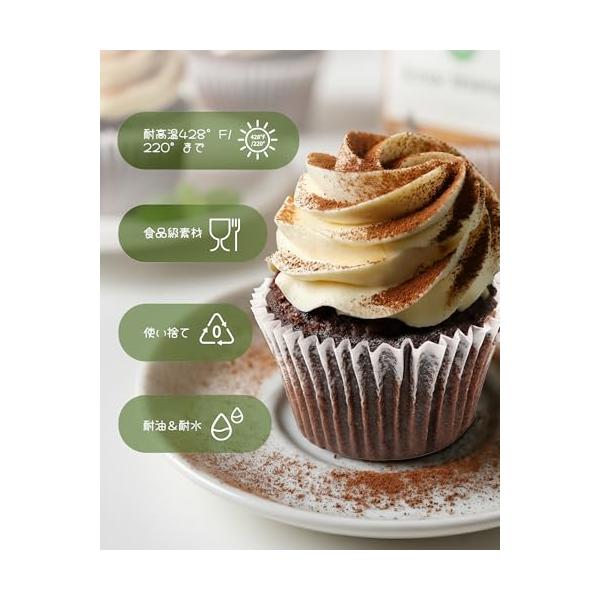 ・防水・耐油・耐高温: Bake Choice のおかずカップは油汚れに強く、フルオロカーボンを添加せずに 220°C/428°F までの温度に耐えることができます。両面にシリコン樹脂コーティングして、耐油、防水などの性能が抜群。