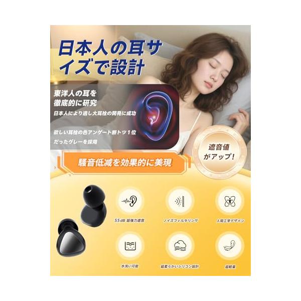・敏感聴力の厳重守護約 55dB の高遮音性能を備え、睡眠時の騒音・仕事中の妨害音・学習時の周囲騒動・公共交通機関内の騒音など、音を気にする全ての場面で不快音を強力遮断。柔らかい素材は長時間装着でも耳の疲労や違和感を大幅軽減。?