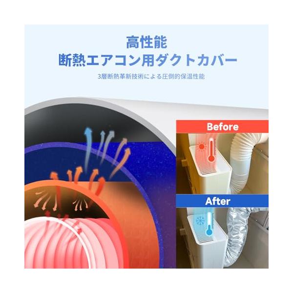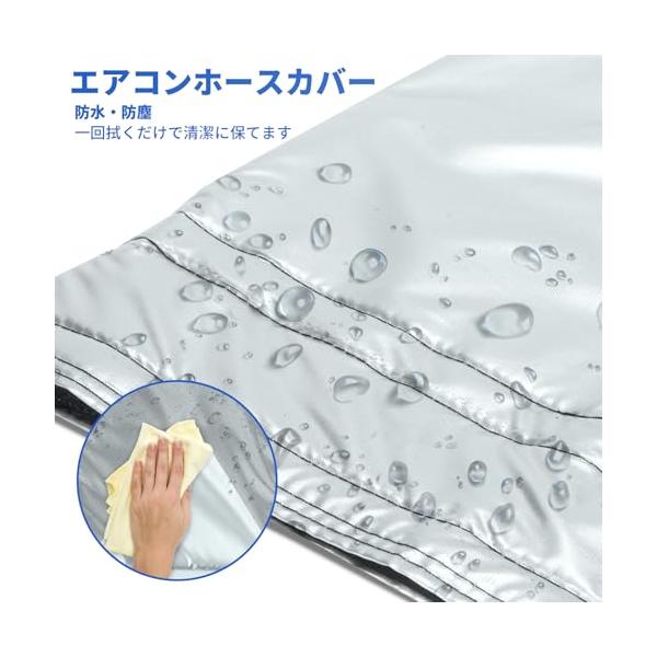 ・防水&防塵&コンパクト移動式エアコン用ダクトカバーは、三重構造の高密度断熱材を採用し、ダクトの放熱防止に加えて、防水、ホコリや汚れの防止にもなります。表面に付着した水滴やほこりはクロスで拭くだけで簡単に除去です。折り畳み式設計のため使用後はコンパクトに収納です