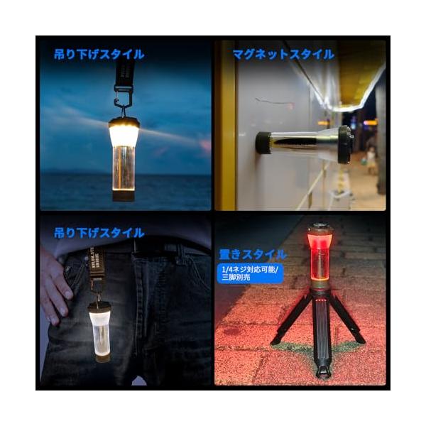 ・多様な取り付け方法:、吊り下げスタイル、マグネットスタイル、置きスタイル、場所や用途に合わせて最適な設置ができます。ランタンサイズ:95*38mm 重量:82g 充電口:Type-C 材質:ABS+PC ルーメ