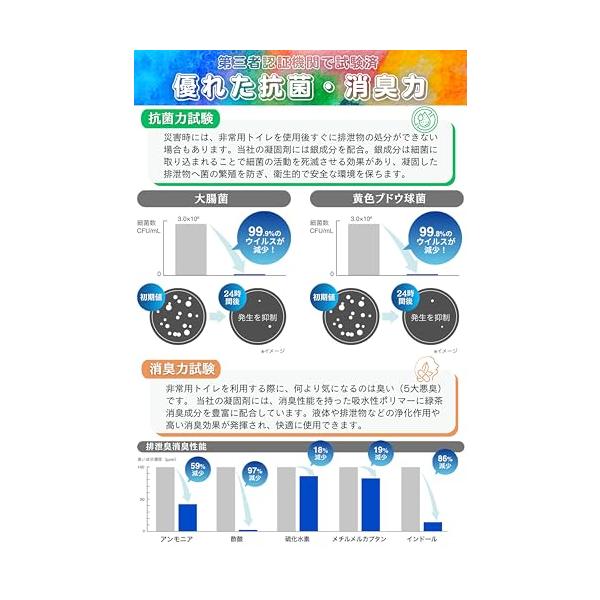 ・抗菌率99.9%汚物を放置すると、大腸菌や黄色ブドウ球菌などのばい菌が異常繁殖します。これらの菌に