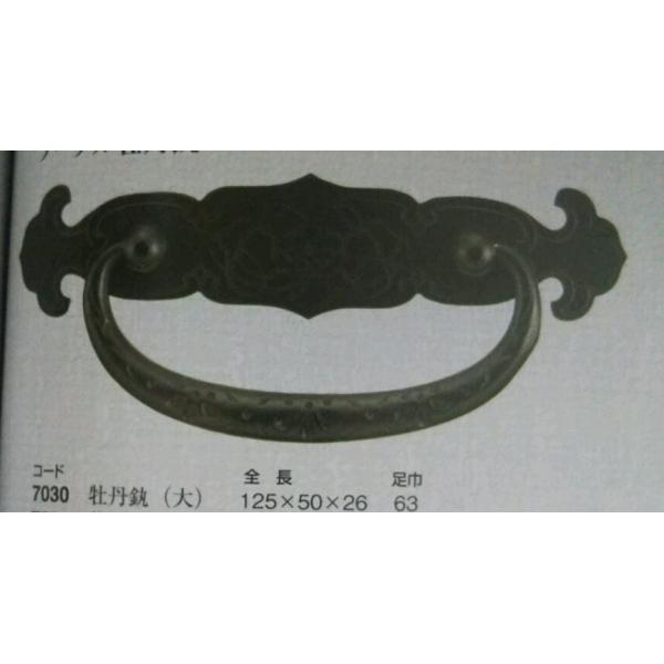 金具 ハンドル 部品 つまみ 取っ手 牡丹かん・時代色・大・足幅63mm 商品番号k-6167030