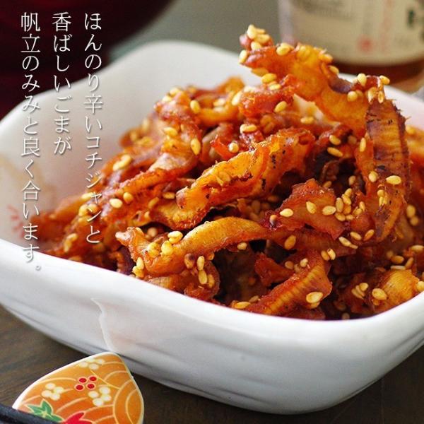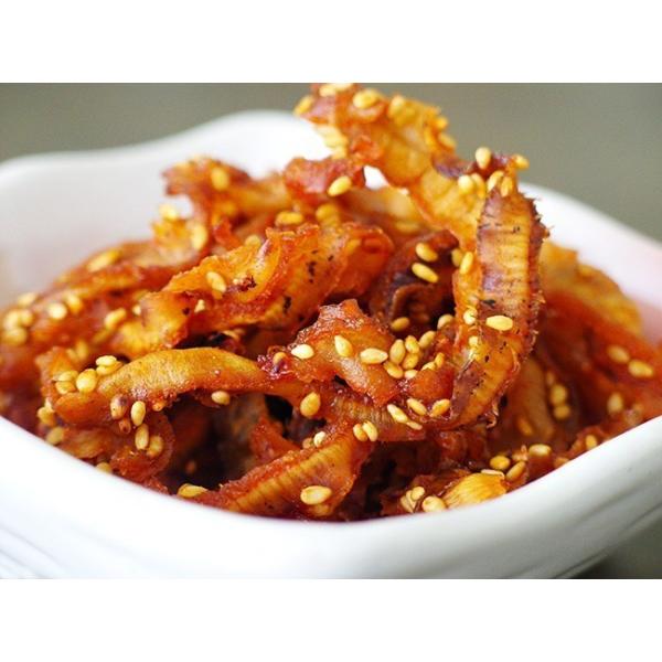 ゴマとコチュジャンを加える事で深い味わいになり、食感と味覚両方で楽しめる珍味です。