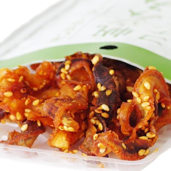 コチュジャンを使用しているとは言え、それほど辛味が強いかというとそれほどではなく、甘辛く、そして味が濃いので、お酒のおつまみに最高の珍味です。