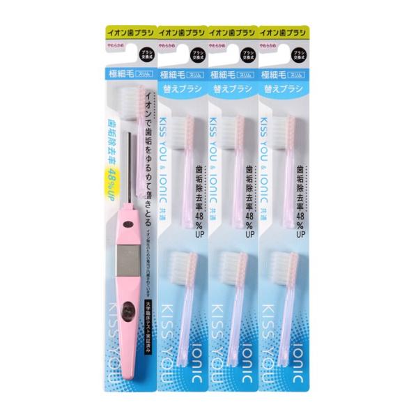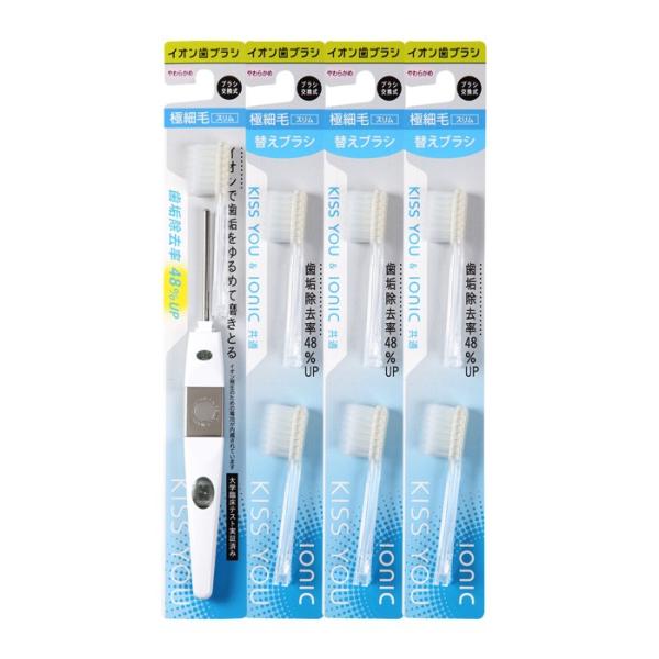 キスユー イオン 歯ブラシ 極細スリム やわらかめ セット(本体1本・替え2P×3本)