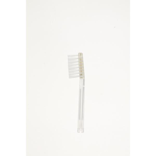 ・毛先を軽く濡らして、ターミナル(銀色の部分)に手のひら又は、指が触れた状態でブラッシングするだけで、内蔵された電池からマイナスイオンが口の中へ流れます。