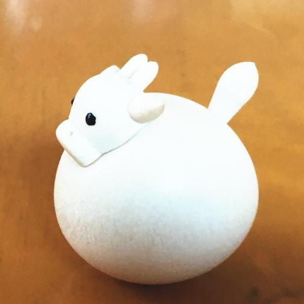 シンプルなデザインが可愛らしい、何度倒れても起き上がる縁起物のウシの置物です。