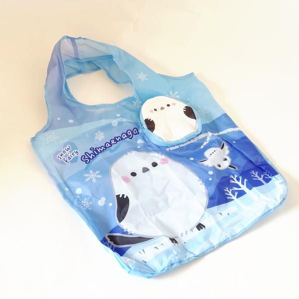 シマエナガ ポーチ付き エコバック しまえなが 買い物 ショッピング 携帯 雑貨 グッズ エナガ 野鳥 小鳥
