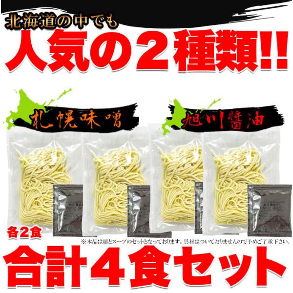 ラーメン 北海道ラーメン 生麺 送料無料 あっさり 食品 お取り寄せ 札幌味噌 旭川醤油 醤油 味噌 4食(各2食)スープ付き 〔メール便出荷〕