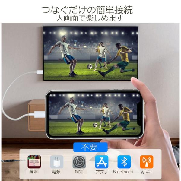 ・iPhoneやiPadを、HDTV、モニター、HDMI入力端子を備えたプロジェクターにつなぐだけで自動的に接続します。
