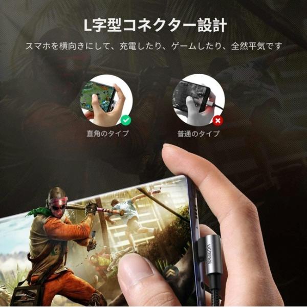 UGREEN TypeC ケーブル USB-A to Type-C L字 ケーブル (50cm) 3A 急速充電 Pixel iPad iphone15 16 アンドロイド スマホ 対応 ■