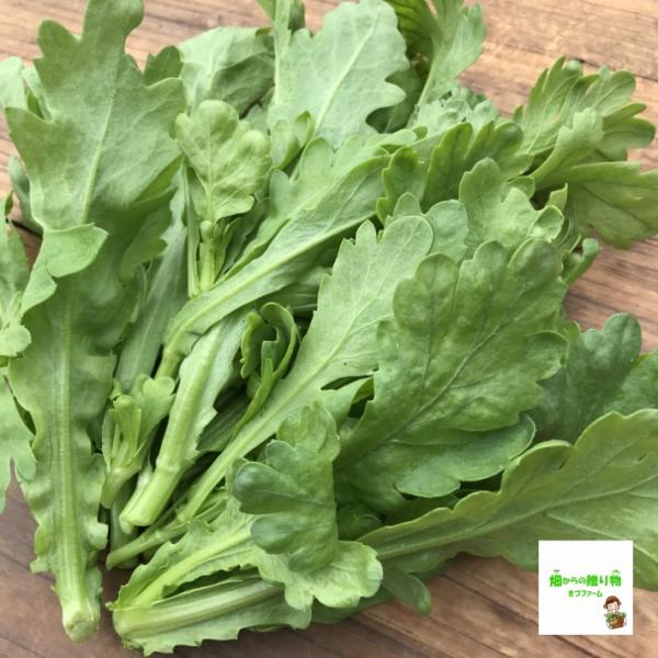 やわらか〜いサラダ春菊 栽培期間中農薬不使用・化学肥料不使用 1束 ※内側の小さい葉の部分が切ってある場合があります