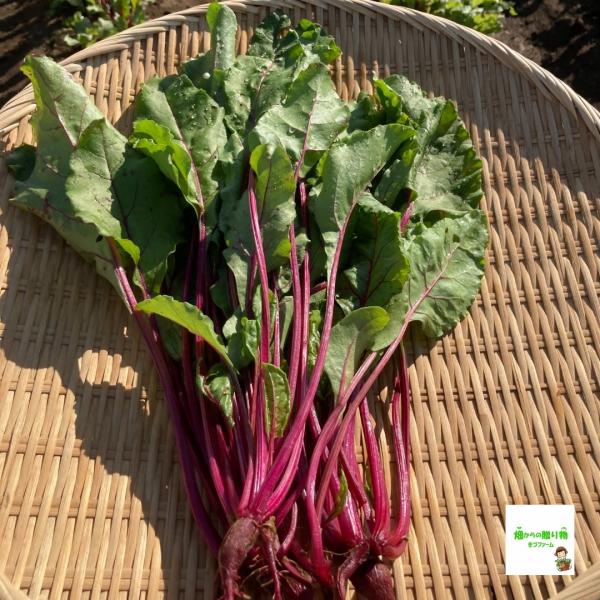 こちらのビーツの葉は、埼玉県産で、畑からの贈り物きづファームが有機肥料を入れて、栽培期間中農薬不使用・化学肥料不使用で育てた野菜です。ビーツの葉や茎には、根よりもはるかに高い栄養素が含まれているそうです。ビーツの葉や茎を生でそのまま食べるには少しクセがあります。食べやすくするために簡単な下処理をしてください。ビーツ特有の色素や栄養が溶け出してしまうため、蒸すことをおすすめします。下処理が終わりましたら、そのままおひたし、サラダ、にんにくで炒めた炒め物などでお召し上がりください。