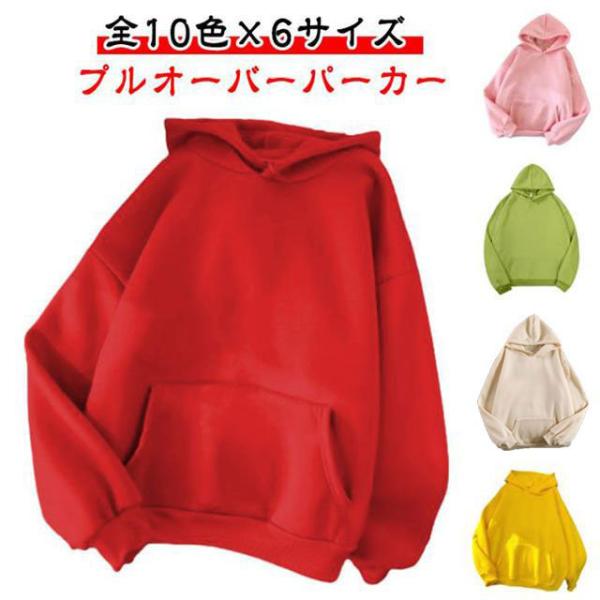 全10色×6サイズ シンプル 全10色×6サイズ プルオーバーパーカー スウェット 黒 黄 大きいサイズ パーカー トップス カジュアル フード付き
