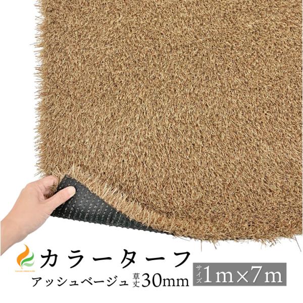 人工芝 マット カラーターフ(アッシュベージュ)30mm(1M×7M) 防炎認証済 /沖縄・離島以外送料無料